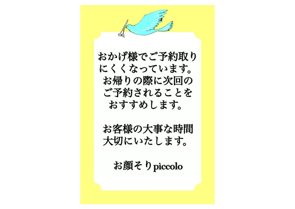 お客様にリピートされるには、次回予約するのが当たり前ということが分かるようにポップでお知らせします。