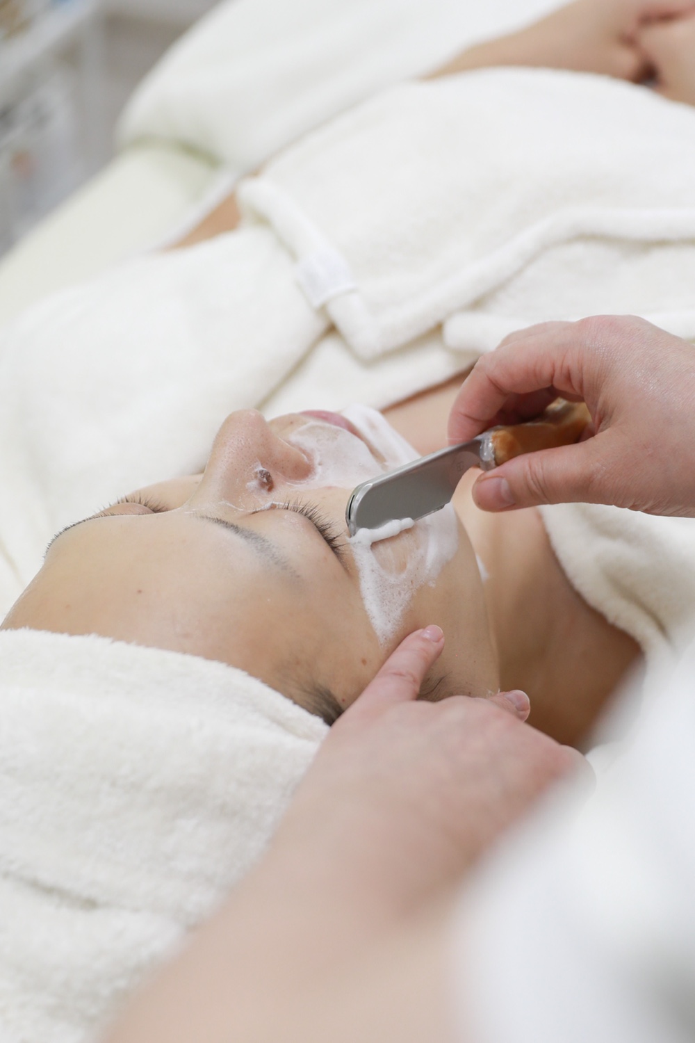 女性お顔そりに特化した剃刀技術を習得し